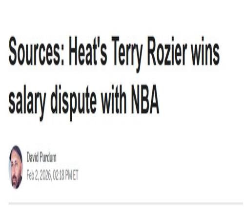 北京时间2月3日,据ESPN援引新闻人士报道,在迈阿密热火队后卫特里-罗齐尔与NBA的薪资纠纷仲裁案中,仲裁人今日作出支持罗齐尔的裁决。该纠纷源于罗齐尔在联邦赌球视察中被提起公诉。