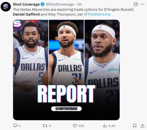 北京时间2月3日,凭证《纽约邮报》记者马克-斯坦恩的报道,达拉斯独行侠正在起劲的兜售丹吉洛-拉塞尔、克莱-汤普森、丹尼尔-加福德三位角色球员,他们不想送走马绍尔。