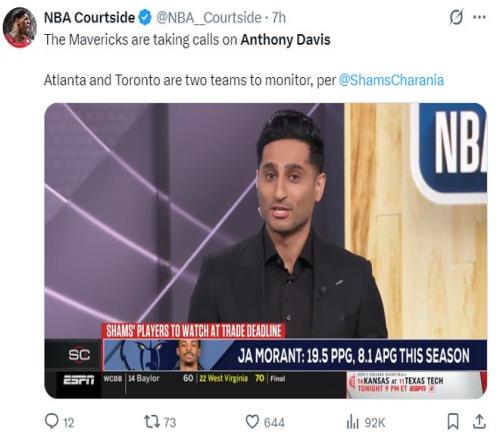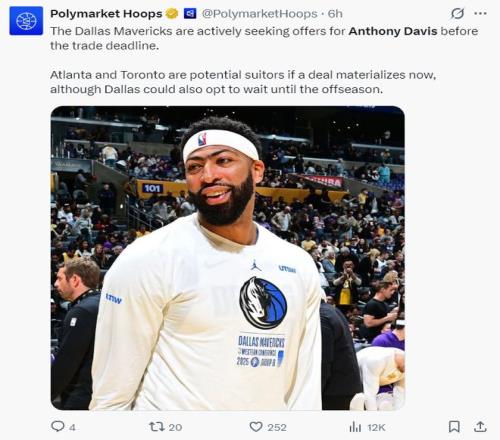 ESPN记者布兰德-麦克马洪体现,由于安东尼-戴维斯的生意价值缩水,独行侠愿意在AD的生意中只获得首轮签、年轻球员、到期条约,这样可以获得未来薪金空间的无邪性。由于老鹰队的波尔津吉斯、肯纳德是到期条约,以是老鹰是最值得关注的潜在买家。猛龙已经不再愿意为了AD拆散他们现有的阵容。
