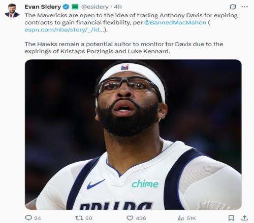 凭证马克-斯坦恩的说法,安东尼-戴维斯与里奇-保罗也希望独行侠将他留到休赛期,由于这包管AD是完全康健的,并且团队可以找寻最适合AD的球队。