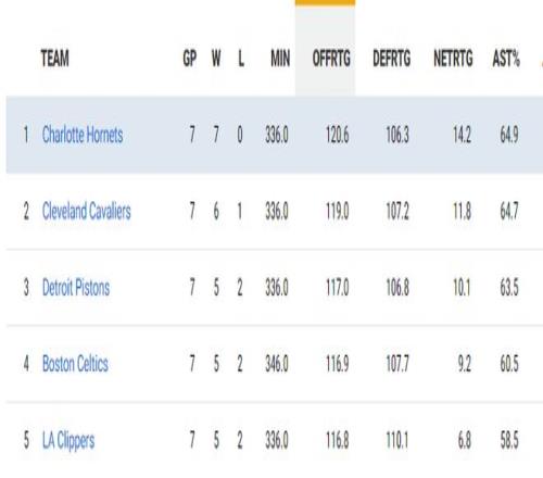 已往的7场角逐黄蜂进攻效率120.6同盟第一,防守效率107.2同盟第三,净效率值14.2同盟第一,这照旧我们熟悉的那支黄蜂吗 ?