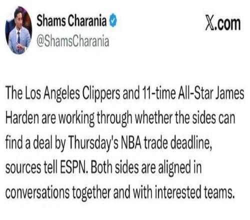 爆料王Shams:快船和哈登准备分道扬镳,双朴直在举行相同,并且都与感兴趣的球队举行了对话。