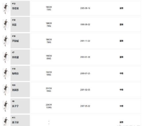 中锋:陈明伶,刘禹彤,张子宇