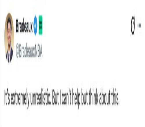 火箭媒体人Bradeaux也晒出哈登与杜兰特身穿火箭队球衣的P图,同时配文道:“我知道这不太现实,但照旧忍不住去想。”