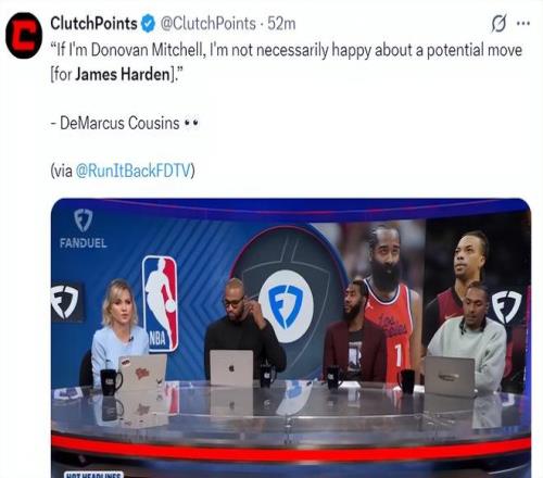 在最新的FDTV节目中 ,前NBA球员考辛斯谈到骑士、快船关于哈登、加兰的生意 ,他说道:若是我是多诺万-米切尔 ,我会很兴奋球队可以生意来詹姆斯-哈登。