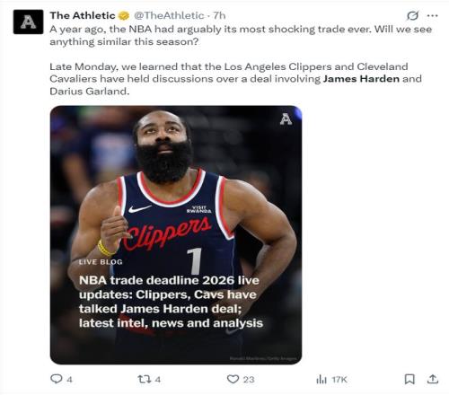 曝哈登换加兰正加速!快船未给哈登真正尊重考神:米切尔会兴奋