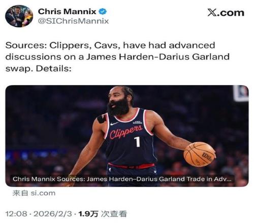 现在凭证《体育画报》名记Chris Mannix报道 ,快船与骑士正深入讨论用哈登换加兰的生意 ,但其中尚且保存薪资匹配、选秀权赔偿、球员意愿等要害障碍因素。