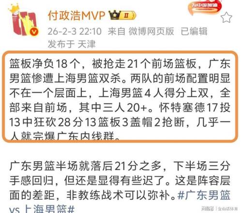Èüºó£¬Ã½ÌåÈ˸¶ÕþºÆMVPÉçý·¢ÎÄÌåÏÖ£ºÀº°å¾»¸º18¸ö£¬±»ÇÀ×ß21¸öǰ³¡Àº°å£¬¹ã¶«ÄÐÀº²ÒÔâÉϺ£ÄÐÀºË«É±¡£Á½¶ÓµÄǰ³¡ÉèÖÃÏÔ×Ų»ÔÚÒ»¸ö²ãÃæÉÏ£¬ÉϺ£ÄÐÀº4È˵÷ÖÉÏË«£¬ËùÓÐÀ´×Ôǰ³¡£¬ÆäÖÐÈýÈË20+£¬»³ÌØÈûµÂ28·Ö15Àº°å3¸Çñ2ÇÀ¶Ï£¬ÏÕЩһÈ˾ÍÍ걬¹ã¶«ÄÚÏßȺ¡­¡­