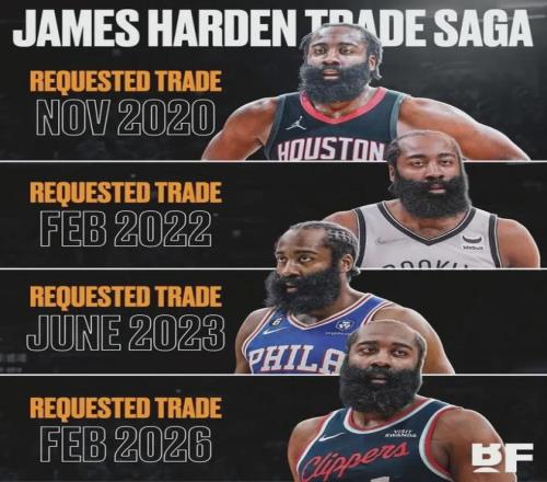 骑士将成为哈登已往6年的第5支球队,此前辗转火箭、篮网、数字人、快船。