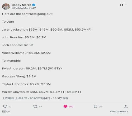 ±±¾©Ê±¼ä2ÔÂ4ÈÕÆÆÏþ£¬¾ÝNBAÃû¼ÇShams±¨µÀ£¬»ÒÐܶӽ«Ð¡¼ÖÂ×-½Ü¿ËÑ·¡¢¿µ²é¶û¡¢À¼´ú¶ûºÍСÎÄ˹-ÍþÁ®Ä·Ë¹ÉúÒâÖÁ¾ôÊ¿¶Ó£¬4»»7»ñµÃ¿­¶û-°²µÂÉ­¡¢Ð¡¿ËÀ³¶Ù¡¢ºàµÂÀï¿Ë˹¡¢Äá°ººÍ3¸öÊ×ÂÖÇ© ¡£ÕâÊDZ¾Èü¼¾ÖÁ½ñ£¬Éæ¼°ÈËÊý×î¶àµÄÒ»±ÊÉúÒâ ¡£