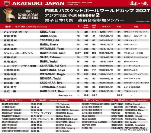 北京时间2月4日,凭证日本篮协官方社媒的公示,为了备战世预赛第二个窗口期,以渡边雄太、富永启生、霍金森在列集训名单,正式完成官宣 。