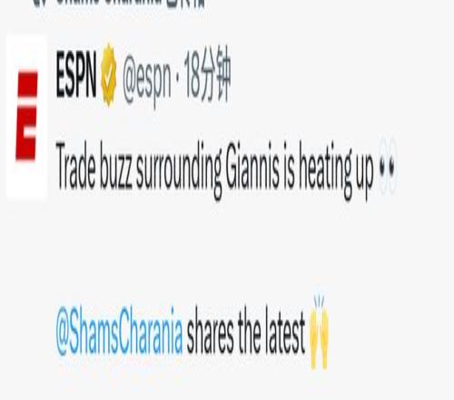 名记Shams在今天的节目上带来了字母哥生意的最新动态——