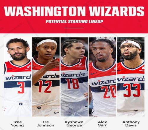 ESPN一度展望本赛季奇才队最新的先发阵容是特雷杨、特雷-约翰逊、乔治、萨尔、浓眉 ,这套先发阵容攻防也很是平衡 ,只惋惜奇才队本赛季是目的是输掉更多的角逐 。