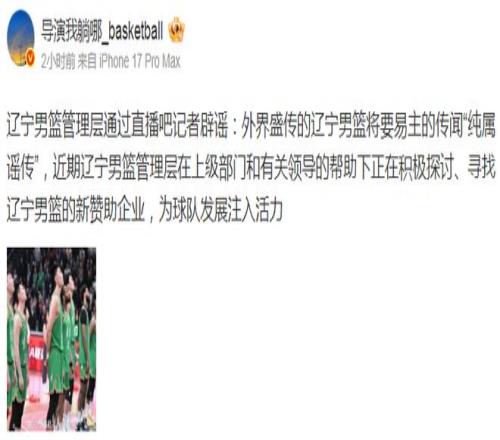 辟谣!事情职员明确否定“辽篮易主”正寻找新赞助企业