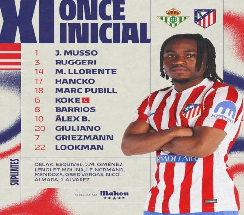 国王杯客战贝蒂斯首发,卢克曼迎来马竞生涯首秀