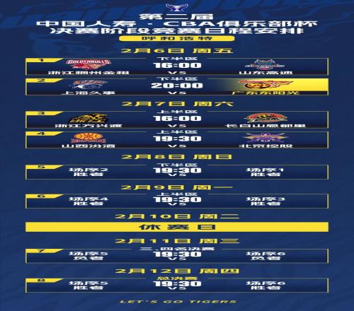 2月6日-12日,第二届CBA俱乐部杯决赛阶段将在内蒙古自治区呼和浩特市内蒙古体育馆举行。明晚20点,广东东阳光将与上海久事交手,争取一个四强席位。