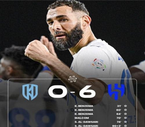 上半场第31分钟,利雅得新月突破僵局,本泽马在门前脚后跟破门,取得新月生涯首球,资助新月1-0领先 。易边再战,第60分钟,本泽马为新月再入一球 。4分钟后,本泽马实现帽子戏法,3-0!第70分钟,又是本泽马立功,他助攻马尔科姆破门,比分来到4-0 。之后本泽马在第72分钟被换下场休息,打卡下班 。新月队长达瓦萨里梅开二度,新月6-0横扫阿科多 。