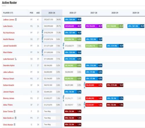 同盟的买断名单也最先充裕起来 ,爵士刚刚裁掉了朗佐-鲍尔、克里斯-布歇 ,篮网也裁掉了托马斯 ,黄蜂也裁掉了迈克-康利。国王也正准备买断德罗赞的到期条约 ,湖人队这份14+3名单可以放眼买断市场。