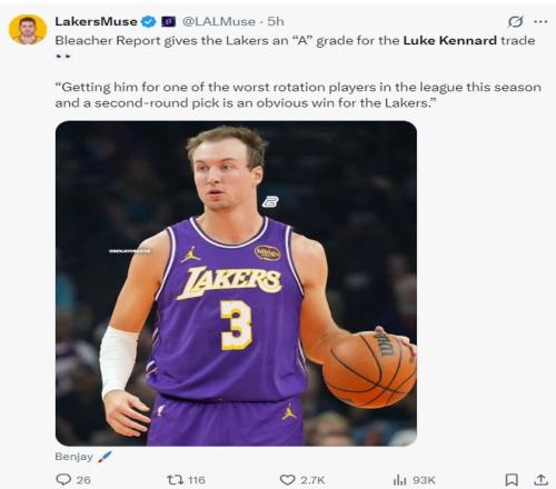 美国媒体BR为湖人生意获得肯纳德直接评A级 ,用本赛季体现最差的轮换球员之一以及一个次轮签就换来肯纳德 ,关于湖人来说无疑是一次重大的乐成。