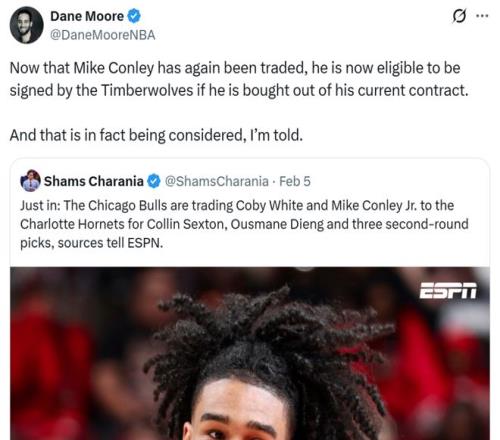 38岁的康利先是被森林狼送往公牛,随后又辗转前往黄蜂,后者后场人才济济,预计将买断康利,为他重回铺平蹊径,森林狼也做好了与这名易服室首脑重聚的准备。