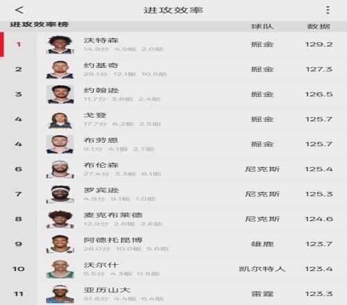 本赛季沃特森为掘金打了49场,其中39场首发。场均出战30.7分钟,获得14.9分4.9篮板2助攻1抢断1.2盖帽1.8失误,三项掷中率:49.6%,41.7%,72.7%。三分掷中率同盟第20,场均能掷中1.5记三分,进攻效率同盟第1。