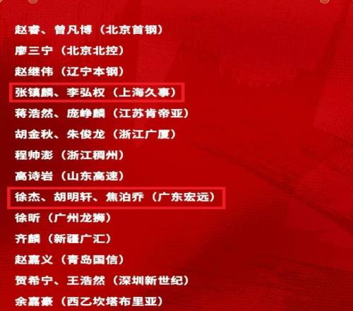 ÉϺ£ÇòÔ±ÕÅÕò÷ëÓëÀîºëȨ £¬¹ã¶«ÇòÔ±ºúÃ÷Ðù¡¢Ðì½ÜÓë½¹²´ÇÇ £¬ËûÃÇÈëÑ¡ÖйúÄÐÀº¼¯Ñµ¶Óȱϯ £¬ËÞ½«Áõï£Ò²ÓÉÓÚ±¸Õ½ÊÀÔ¤Èüȱϯ¡£