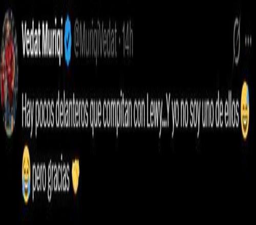 这位科索沃国脚也在社媒诙谐地回应道:“能和莱万相提并论的先锋没几个……而我可不是其中之一啊 ,但照旧谢谢了。”