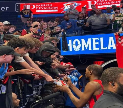 年迈心情大好,赛后恋恋不舍为俄克拉荷马的球迷们署名。
