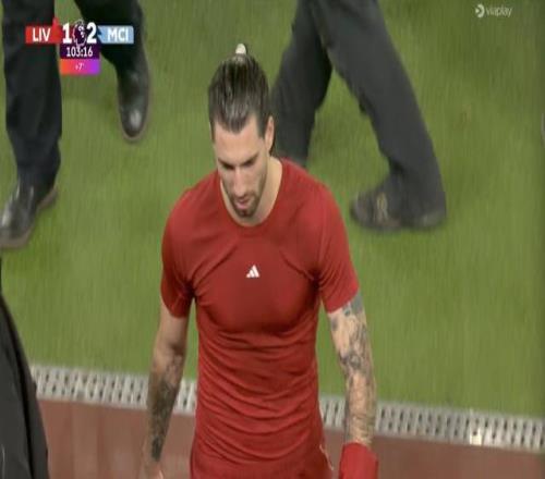 战曼城染红,索博斯洛伊利物浦生涯首次领到红牌