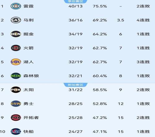 火箭目今以32胜19负位列西部第四 ,战绩与第五的湖人打平 ,仅领先第七的太阳2个胜场 ,落伍第三的掘金1个胜场 ,既有希望攻击前三甲又面临着掉出季后赛区域的危险 。