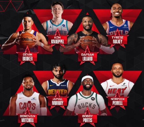 相较于扣篮大赛的名单 ,三分球大赛的名单就显得星光熠熠了 ,有布克、克尼普尔、马克西、米切尔、穆雷、波蒂斯、鲍威尔和利拉德。是的 ,因伤赛季报销的利拉德也进入名单了。