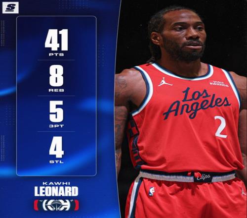 4.伦纳德赛季第四场40+生涯新高 ;