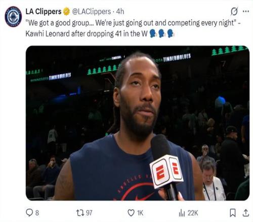 赛后伦纳德接受采访 ,他说道:我们是一支精彩的球队 ,我们每一晚都为了胜利全力以赴去拼搏竞争 ,我们有一个目的。