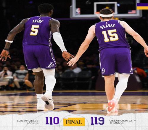 8连主的第三场角逐,三连胜的湖人在主场迎战卫冕冠军雷霆,双方上一次交手,湖人惨败给敌手29分,因此这一次交锋,无论是为了攻击四连胜,照旧为了报一箭之仇,湖人都极端盼愿赢下角逐,湖人这边东契奇因伤缺阵,雷霆那里亚历山大也不打,因此这场角逐可以看作是双方纯阵容深度的一次比拼,最终的效果无疑让湖人球迷有些失望,湖人以110比119不仇视手,本赛季两次输给雷霆,三连胜也被终结,更糟糕的是,这场角逐湖人众将显着拼尽了体能,明日他们还要背靠背迎战西部第二的马刺,很可能迎来一波两连败。