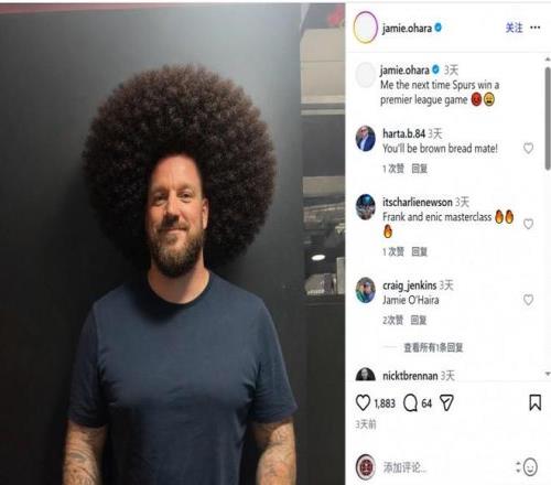 前热刺中场、谈论员奥哈拉三天前曾在社交媒体上晒出一张搞笑图片,内容为自己酿成爆炸头,配文:“热刺下次赢得英超角逐时的我。”这毫无疑问是玩了曼联“蓄发哥”球迷的梗。
