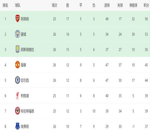 各人都知道,阿森纳一直有下半程掉链子的古板,现在球队不但面临诸多伤病,曼城又苦苦紧逼,接下来阿森纳要头大了,由于他们险些不可出错,不然的话,他们的榜首宝座,就最先不稳了。值得一提的是,本轮维拉也在主场1-0击败了布莱顿,他们现在和阿森纳也只差6分,虽然维拉争冠希望不大,可是若是阿森纳后面真的掉链子,维拉未必就没有时机。至少从现在来看,阿森纳虽然照旧夺冠第一热门,可是阿尔特塔肯定不敢大意,在还没有确保冠军到手之前,阿森纳不可有任何松懈,不然效果就难说了!