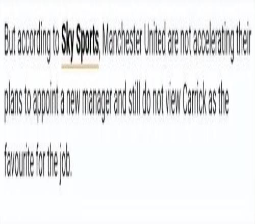 据英国天空体育报道 ,曼联并未加速任命新主帅的历程 ,仍不以为卡里克是该职位的最热门人选。