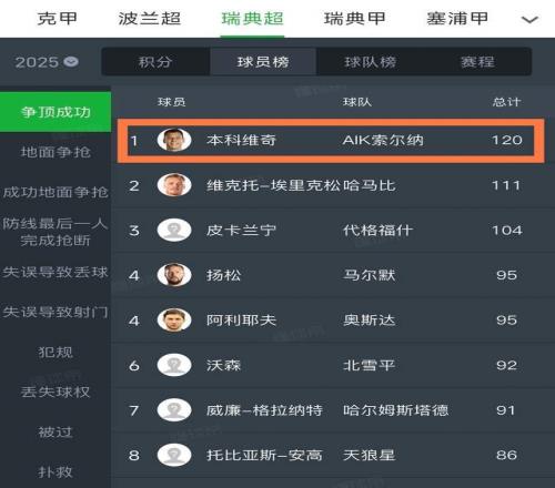 第二个,这是中超真正的超等空霸。身高1米94的他,上赛季在瑞典是联赛争顶乐成最多的球员,也是整个联赛阻挡数最高的球员,能力相当强,要知道,在北欧这种身体素质极高的联赛都能拿下争顶王,中超其他球员想和他争头球基本上很难了。