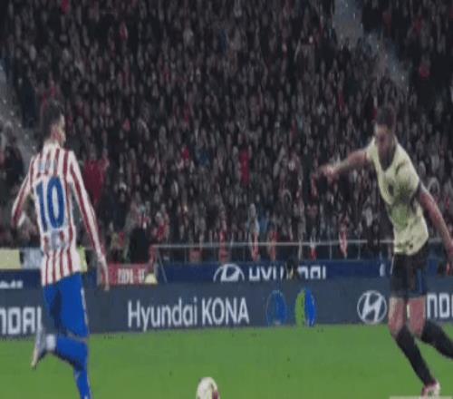 第14分钟,格子的神勇状态,灵巧的身姿展现出来 。他得球后在禁区内换到左脚射门,低射,入网 。马竞2-0领先!