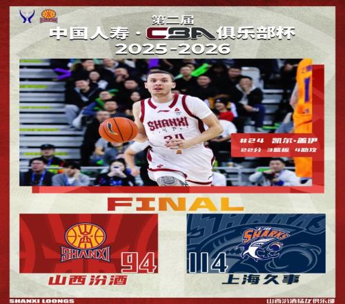 ±±¾©Ê±¼ä2026Äê2ÔÂ12ÈÕ19:30 £¬µÚ¶þ½ìÖйúÈËÊÙ¡¤CBA¾ãÀÖ²¿±­¾öÈü´òÏì £¬É½Î÷·Ú¾ÆÔÚÄÚÃɹÅÌåÓý¹Ý £¬ÌôÕ½ÎÀÃá¹Ú¾üÉϺ£¾ÃÊ¡£±¾³¡½ÇÖ𠣬ɽÎ÷¶Ó½ø¹¥×´Ì¬Ç·¼Ñ £¬·ÀÊØ²»·óÆð¾¢×Ô¶¯ £¬°üÀ¨Àº°åÇò´¦ÓÚÁÓÊÆ £¬µ¼Ö´ó±È·ÖÂäÎé £¬Ï°볡ȫ¶ÓÓÐÏÔןÄÉÆ £¬²¢ÔÚС½Ú·ÜÁ¦×··Ö £¬µ«ÖÕ¾¿²»³ðÊÓÊÖ £¬×îÖÕÈ«³¡½ÇÖð¿¢Ê £¬É½Î÷·Ú¾Æ94£º114²»µÐÉϺ£¾ÃÊ £¬»ñµÃµÚ¶þ½ìCBA¾ãÀÖ²¿±­ÑǾü¡£