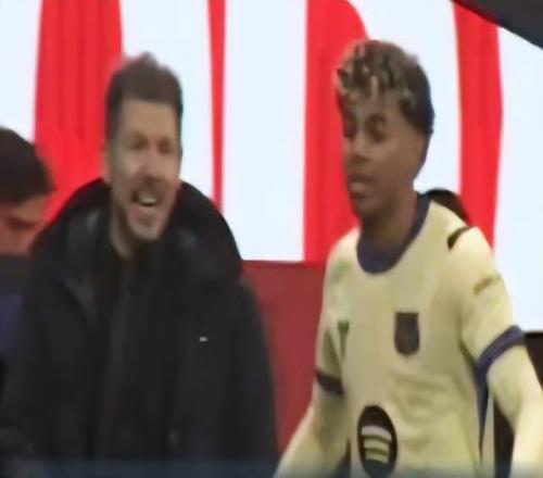 马竞踢得顺风顺水,埃里克-加西亚开场6分钟自摆乌龙,格列兹曼、卢克曼先后破门,马竞早早3-0领先 。在场边指挥的马竞主帅西蒙尼,盯上了亚马尔 。西班牙6台抓到画面: