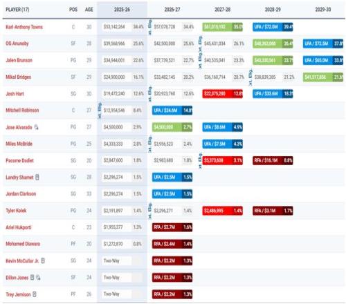 尼克斯原本就是14+3名单他们在等索汉度过澄清期 ,一旦签下索汉后全新的15+3名单就出炉:布伦森、唐斯、阿奴诺比、布里奇斯、哈特、米罗、阿尔瓦拉多、迈克布莱德、沙梅特、克拉克森、科莱克、迪亚瓦拉、胡克波尔蒂、索汉、达迪耶 ;杰米森、琼斯、麦卡勒(三个双向条约)。