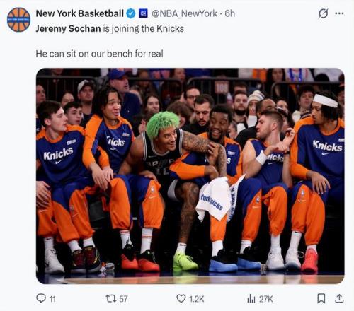 此前尼克斯用特里+1次轮从鹈鹕换来了阿尔瓦拉多 ,老六在尼克斯的第三场角逐就爆发 ,替补18分钟拿到26分3篮板4助攻5抢断成为2012年JR-史女士后首人 ,现在索汉也加盟尼克斯 ,球队补强了两个替补轮换 ,尼克斯最弱一环得以增强。