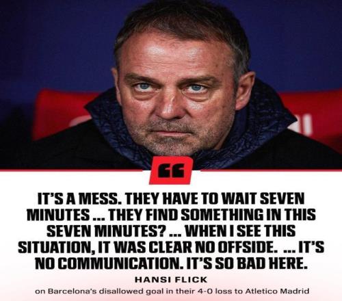 巴萨客场0比4惨败于马竞脚下,叫醒了多项羞辱纪录:这是2023年4月国王杯半决赛之后,巴萨首次净负4球;也是2020年8月欧冠1/4决赛之后,巴萨首次上半场丢4球,其时巴萨最终2比8输给拜仁,后者的主帅正是弗利克。