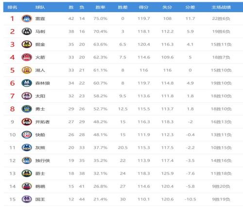 ¿ªÍØÕßÓ®Çòºó27ʤ29¸º£¬ÅÅÃû´ÓÎ÷²¿µÚÊ®Éýµ½µÚ¾Å£¬¿ì´¬Äð³ÉµÚÊ®£¬Á½¶Óʤ³¡²îÒ»Ñù£¬¾ôÊ¿ÊäÇòºó18ʤ38¸ºÅÅÃûÎ÷²¿µÚ13¡£