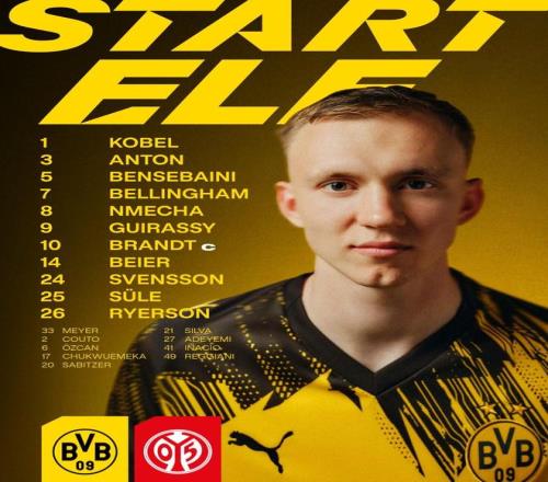 北京时间2月14日03:30,德甲 第22轮,多特蒙德坐镇主场迎战美因茨,赛前双方球队首发名单宣布如下: