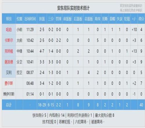 µÏÂ×-¹þçêӭןç¸çͶ½ø¾øÉ±£¬°²¶«Äá¶Ó40-34ïÔ̭СÀ︥˹¶Ó ¡£Ñîå«É­Ìæ²¹³öÕ½8·ÖÖÓ£¬Í¶Àº5ÖÐ4£¬Èý·Ö2ÖÐ1£¬·£Çò1ÖÐ1£¬»ñµÃ10·Ö2Àº°å ¡£µÃ·ÖÈ«³¡µÚ¶þ¸ß£¬½ö´ÎÓÚÄáµÂºÀÔóµÄ11·Ö ¡£µ¥³¡10·ÖÒ²Áè¼ÝÁËСÑîͨÀýÈü×î¸ß·Ö£¨9·Ö£© ¡£