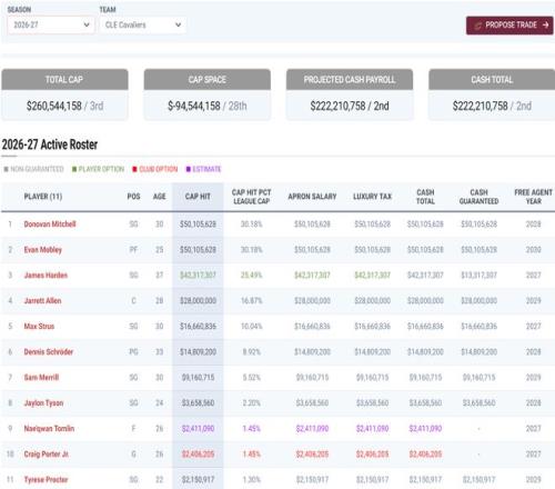 换言之外界都以为勒布朗-詹姆斯将要重返克利夫兰 ,但骑士队今夏要签下勒布朗-詹姆斯难度很大 ,26-27赛季骑士队11份包管名单总支出就高达2.605亿美元 ,骑士已经是超奢侈税第二征点的球队 ,以是詹姆斯成为自由球员后骑士只能给詹姆斯宿将底薪370万。