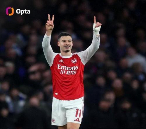 马丁内利本赛季杯赛进球已上双,成赖特后首位告竣的枪手球员