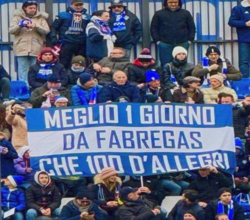 这些科莫球迷打出的横幅上写着“当1天的法布雷加斯胜过当100天的阿莱格里”,显然这是对阿莱格里执教的球队倾向于防守的球风的讥笑 。